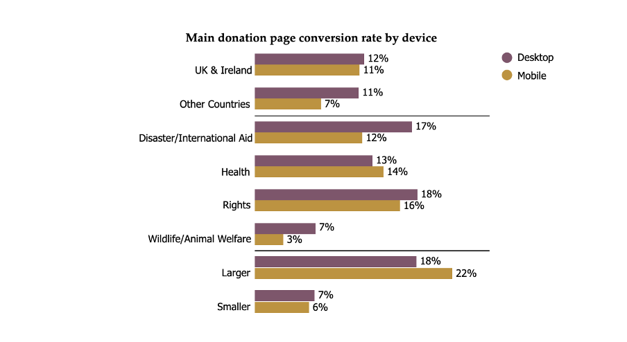 Whilst charities have done a great job at improving their websites, donation pages and online journeys in recent years, there’s still room to do more. According to the M&R & Rally 2025 Benchmark study, the average main donation page conversion rate was 11% for mobile users and 12% on desktop. That means a huge percentage of users who arrive on a donation page still aren’t making a donation - think of all that potential income!